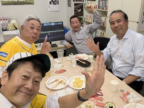 この4人は2年前の日本シリーズで集まり 大山のサヨナラ打に歓喜の涙を流した面々。 縁起がよいのである。