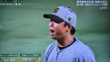 「お〜ん。 今年の坂本(誠志朗)は 去年9月の読売戦で 坂本(勇人)に外角をライト前に打たれて優勝を断たれた。 その反省でシーズンはものすごいインコース使ってたんよ。 ただこの最後にアウトコースで2本ホームラン打たれた。 これは おれはね ものすごいイヤな感じがする・・・」