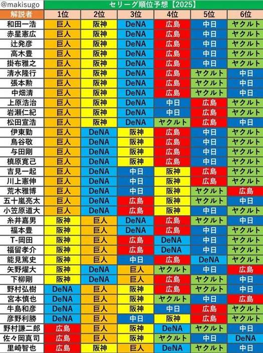 雁首揃えて読売予想した解説者たちのおかげで 阪神優勝したとも言えるのである。