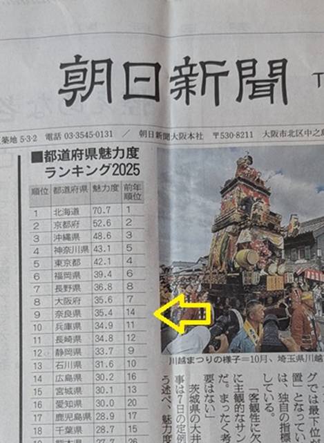 「都道府県魅力度ランキング」で 奈良は14位 ⇒ 9位にジャンプアップしているのである。 そりゃおんなじ古都を訪れるなら、 ブタ混みの京都より奈良の方がいいですわな。