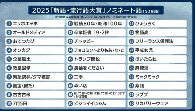 去年は「初老ジャパン」「(大谷翔平の)50-50」とかあったし、 その前年は 岡田さんの「ARE」 だった。