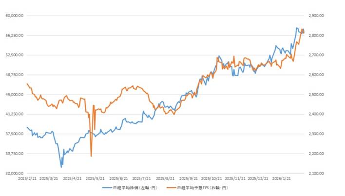 まず日経平均の予想EPS(一株当たりの収益)が 過去最高値(2800円)をつけたらしいのである。